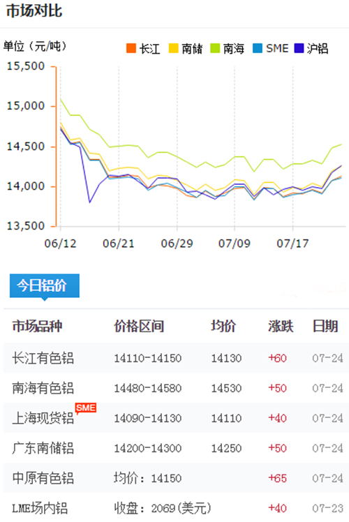鋁錠價(jià)格今日鋁價(jià)2018-7-24