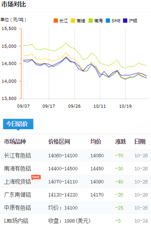 鋁錠價(jià)格今日鋁價(jià)2018-10-26
