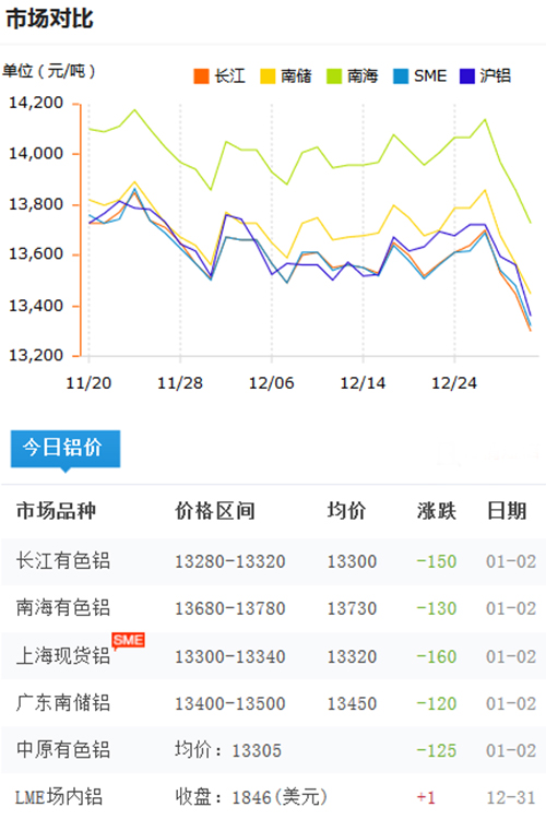 鋁錠價(jià)格今日鋁價(jià)2019-01-02