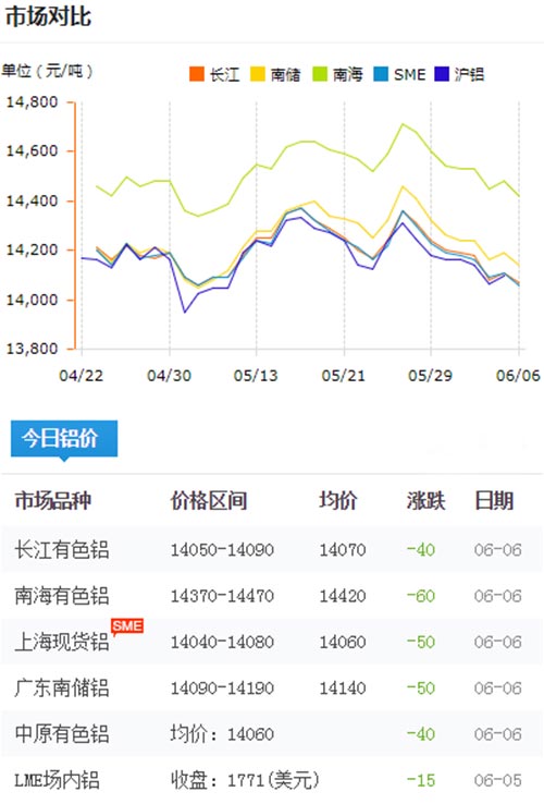 鋁錠價(jià)格今日鋁價(jià)2019-06-06