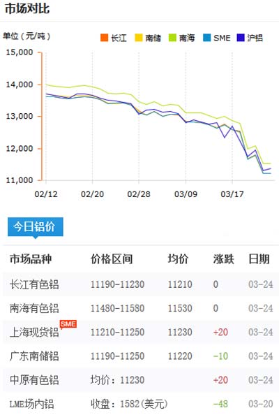 鋁錠價(jià)格今日鋁價(jià)2020-03-24