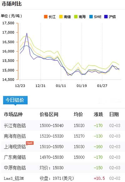 鋁錠價(jià)格今日鋁價(jià)2021-02-03