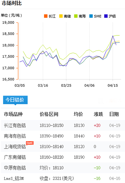 鋁錠價格今日鋁價2021-04-19