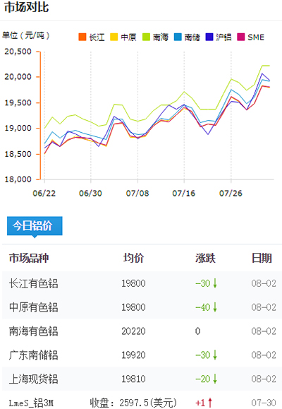 鋁錠價格今日鋁價2021-08-02